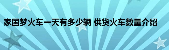 以上就是家國夢火車一天有多少輛的全部內容,不知道各位親愛的小伙伴是否掌握了呢?希望能提供些幫助!如果還有其他疑問,歡迎訪問當游網的相關文章。