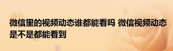 大家好,小琪來為大家解答以上問題。微信里的視頻動態(tài)誰都能看嗎,微信視頻動態(tài)是不是都能看到這個很多人還不知道,現(xiàn)在讓我們一起來看看吧!