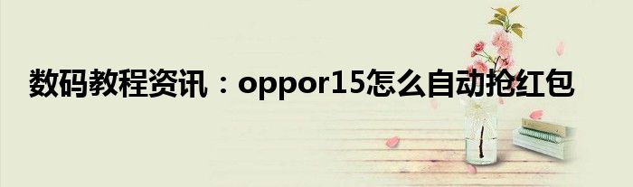 現在各種各樣的數碼設備在我們的生活當中幾乎可以說是無處不在,平時我們使用的手機,IP,電腦等等這些都屬于數碼設備,那么這些數碼設備當中會存在著很多的功能,當然在我們使用的過程當中自然也會出現說各種的問題,那么我們如何才能去解決這些問題以及使用好這些功能呢?這個時候就需要我們去了解這些功能及問題的解決方法,今天小編就來給大家分享下,關于oppor15怎么自動搶紅包方面的問題及功能的詳細內容,希望下面小編為大家分享的內容對大家來說有一定的幫助哦。oppor15怎么自動搶紅包