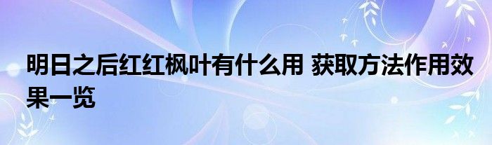 以上就是明日之后紅紅楓葉有什么用的全部內容,不知道各位親愛的小伙伴是否掌握了呢?希望能提供些幫助!如果還有其他疑問,歡迎訪問當游網的相關文章。