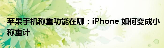 相信通過蘋果手機稱重功能在哪:iPhone 如何變成小稱重計這篇文章能幫到你,在和好朋友分享的時候,也歡迎感興趣小伙伴們一起來探討。