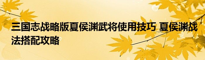 以上就是夏侯淵的戰法學習和武將搭配攻略介紹了,各位玩家都會玩了吧,三國志戰略版作為一個戰略游戲,有著許多玩法,小編這里只是拋磚引玉,更多厲害的玩法還等玩家們自己發掘哦。