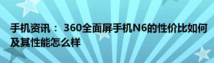 今天來說一下360全面屏手機N6的性價比如何及其性能怎么樣這方面的一些訊息,不少朋友對360全面屏手機N6的性價比如何及其性能怎么樣這方面的一些訊息頗感興趣的,小編今天就整理了一些信息,希望對有需要的朋友有所幫助。