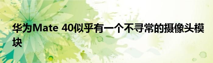 華為(Pocket-lint)-華為即將推出Mate 40系列手機,但看起來手機的后部將采用不尋常的攝像頭模塊設計。