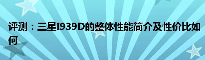 簡單的說一下關于三星I939D的整體性能簡介及性價比如何這方面的訊息,不少朋友對于三星I939D的整體性能簡介及性價比如何這方面的信息頗感興趣的。小編今天就為此整理一些相關的訊息,希望對有需要的朋友有所幫助。
