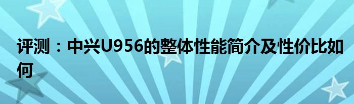 簡單的說一下關于中興U956的整體性能簡介及性價比如何這方面的訊息,不少朋友對于中興U956的整體性能簡介及性價比如何這方面的信息頗感興趣的。小編今天就為此整理一些相關的訊息,希望對有需要的朋友有所幫助。