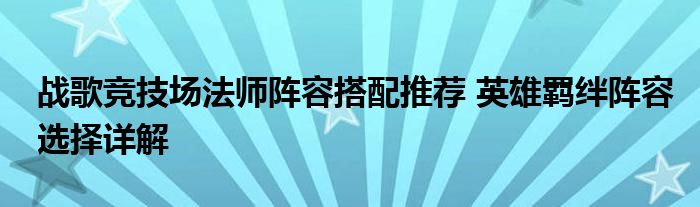 以上就是關于戰歌競技場英雄羈絆陣容選擇詳解,小伙伴們學會了嗎?希望以上攻略能給玩家們帶來一定的幫助,關于更多戰歌競技場攻略請關注當游網。
