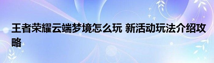 王者榮耀是款非常熱門的手游,云端夢境是游戲中最新的一個活動,很多小伙伴們都不知道它的玩法,那么下面小編就與玩家們分享下關(guān)于王者榮耀云端夢境怎么玩攻略,玩家們一起來看看吧。