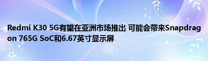 根據Pricebaba的報告,Redmi K30 5G可能會很快在亞洲市場推出。使用Ishan Agarwal的輸入的報告稱,智能手機一旦推出,就可以在亞洲市場以霜白和霧紫色提供。該報告還聲稱,亞洲市場的手機可以提供多種版本-6GB + 64GB,6GB + 128GB和8GB + 128GB。