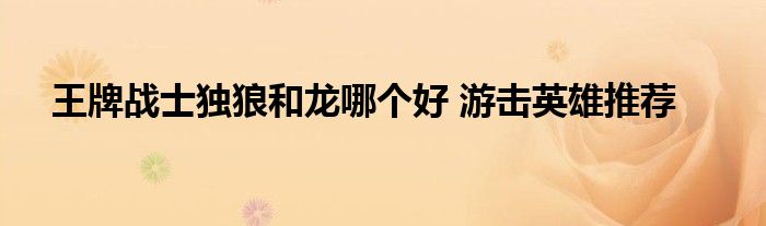 在王牌戰士手游中,獨狼和龍都是非常容易上手的游擊英雄,也是游戲中的熱門角色,那么王牌戰士獨狼和龍哪個好呢,下面就來看看小白為大家帶來的詳細介紹,感興趣的不要錯過哦。