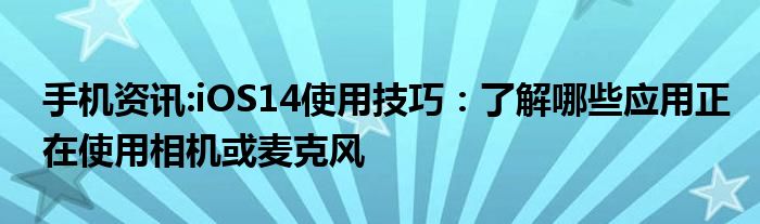 如今使用IT數碼設備的小伙伴們是越來越多了,那么IT數碼設備當中是有很多知識的,這些知識很多小伙伴一般都是不知道的,就好比最近就有很多小伙伴們想要知道iOS14使用技巧:了解哪些應用正在使用相機或麥克風,那么既然現在大家對于iOS14使用技巧:了解哪些應用正在使用相機或麥克風都感興趣,小編就來給大家分享下關于iOS14使用技巧:了解哪些應用正在使用相機或麥克風的一些信息吧。