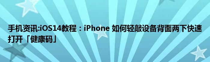 如今使用IT數碼設備的小伙伴們是越來越多了,那么IT數碼設備當中是有很多知識的,這些知識很多小伙伴一般都是不知道的,就好比最近就有很多小伙伴們想要知道iOS14教程:iPhone 如何輕敲設備背面兩下快速打開「健康碼」,那么既然現在大家對于iOS14教程:iPhone 如何輕敲設備背面兩下快速打開「健康碼」都感興趣,小編就來給大家分享下關于iOS14教程:iPhone 如何輕敲設備背面兩下快速打開「健康碼」的一些信息吧。