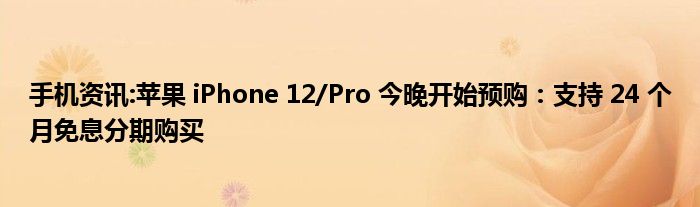 如今使用IT數碼設備的小伙伴們是越來越多了,那么IT數碼設備當中是有很多知識的,這些知識很多小伙伴一般都是不知道的,就好比最近就有很多小伙伴們想要知道蘋果 iPhone 12/Pro 今晚開始預購:支持 24 個月免息分期購買,那么既然現在大家對于蘋果 iPhone 12/Pro 今晚開始預購:支持 24 個月免息分期購買都感興趣,小編就來給大家分享下關于蘋果 iPhone 12/Pro 今晚開始預購:支持 24 個月免息分期購買的一些信息吧。