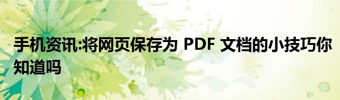 如今使用IT數(shù)碼設(shè)備的小伙伴們是越來越多了,那么IT數(shù)碼設(shè)備當(dāng)中是有很多知識的,這些知識很多小伙伴一般都是不知道的,就好比最近就有很多小伙伴們想要知道將網(wǎng)頁保存為 PDF 文檔的小技巧你知道嗎,那么既然現(xiàn)在大家對于將網(wǎng)頁保存為 PDF 文檔的小技巧你知道嗎都感興趣,小編就來給大家分享下關(guān)于將網(wǎng)頁保存為 PDF 文檔的小技巧你知道嗎的一些信息吧。