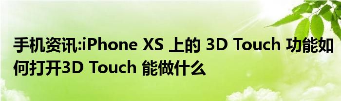 如今使用IT數碼設備的小伙伴們是越來越多了,那么IT數碼設備當中是有很多知識的,這些知識很多小伙伴一般都是不知道的,就好比最近就有很多小伙伴們想要知道iPhone XS 上的 3D Touch 功能如何打開3D Touch 能做什么,那么既然現在大家對于iPhone XS 上的 3D Touch 功能如何打開3D Touch 能做什么都感興趣,小編就來給大家分享下關于iPhone XS 上的 3D Touch 功能如何打開3D Touch 能做什么的一些信息吧。