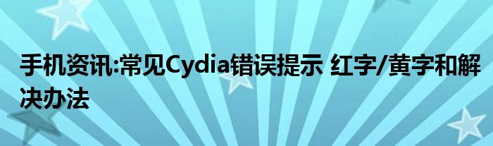 日常使用 Cydia 時,經常會出現一些問題,導致Cydia軟件無法安裝,并且 cydia 會提示一行紅字或者黃字。通常情況下,黃字代表一些警示型的錯誤,此時問題不大,一般情況下不影響 cydia 運行。若提示紅字的話,就代表 cydia 出現了重大問題,可能影響 cydia 正常運行或者無法安裝軟件。日常使用 Cydia,大概有 60% 的問題都是因為網絡因素造成的,所以大家使用的時候盡量用穩定高速的 W-Fi。下面給大家列出一些 Cydia 常見的錯誤和解決辦法,希望對大家有所幫助。