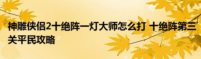 以上就是神雕俠侶2十絕陣第三關的打法攻略了,希望對大家有所幫助,更多游戲相關的內容,請持續關注當游網。