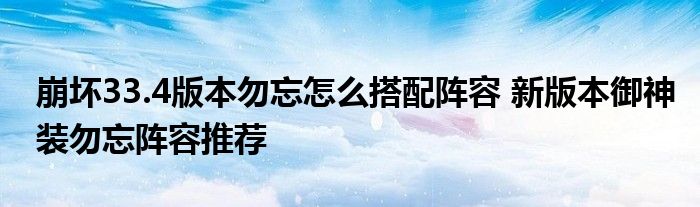 以上就是崩壞33.4版本勿忘怎么搭配陣容的內容,小伙伴們學會了嗎?希望對大家有所幫助,更多崩壞3游戲相關的攻略,請持續關注當游網。