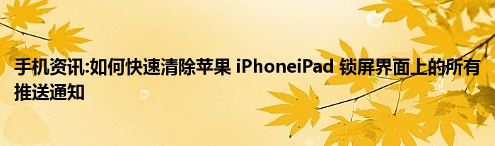 如今使用IT數碼設備的小伙伴們是越來越多了,那么IT數碼設備當中是有很多知識的,這些知識很多小伙伴一般都是不知道的,就好比最近就有很多小伙伴們想要知道如何快速清除蘋果 iPhoneiPad 鎖屏界面上的所有推送通知,那么既然現在大家對于如何快速清除蘋果 iPhoneiPad 鎖屏界面上的所有推送通知都感興趣,小編就來給大家分享下關于如何快速清除蘋果 iPhoneiPad 鎖屏界面上的所有推送通知的一些信息吧。
