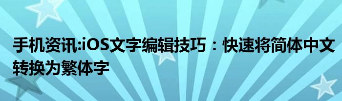 如今使用IT數(shù)碼設(shè)備的小伙伴們是越來越多了,那么IT數(shù)碼設(shè)備當中是有很多知識的,這些知識很多小伙伴一般都是不知道的,就好比最近就有很多小伙伴們想要知道iOS文字編輯技巧:快速將簡體中文轉(zhuǎn)換為繁體字,那么既然現(xiàn)在大家對于iOS文字編輯技巧:快速將簡體中文轉(zhuǎn)換為繁體字都感興趣,小編就來給大家分享下關(guān)于iOS文字編輯技巧:快速將簡體中文轉(zhuǎn)換為繁體字的一些信息吧。