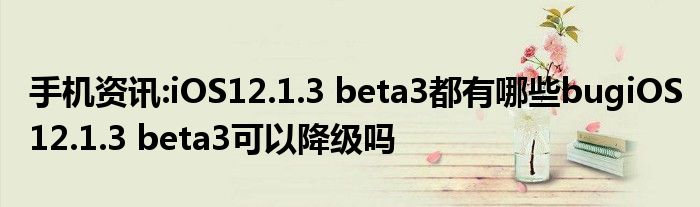 如今使用IT數碼設備的小伙伴們是越來越多了,那么IT數碼設備當中是有很多知識的,這些知識很多小伙伴一般都是不知道的,就好比最近就有很多小伙伴們想要知道iOS12.1.3 beta3都有哪些bugiOS12.1.3 beta3可以降級嗎,那么既然現在大家對于iOS12.1.3 beta3都有哪些bugiOS12.1.3 beta3可以降級嗎都感興趣,小編就來給大家分享下關于iOS12.1.3 beta3都有哪些bugiOS12.1.3 beta3可以降級嗎的一些信息吧。