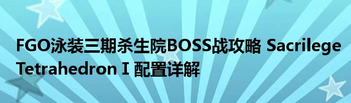 以上就是關于FGOSacrilegeTetrahedronⅠ配置詳解,小伙伴們學會了嗎?希望以上攻略能給玩家們帶來一定的幫助,關于更多FGO攻略請關注當游網。