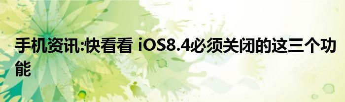 如今使用IT數碼設備的小伙伴們是越來越多了,那么IT數碼設備當中是有很多知識的,這些知識很多小伙伴一般都是不知道的,就好比最近就有很多小伙伴們想要知道快看看 iOS8.4必須關閉的這三個功能,那么既然現在大家對于快看看 iOS8.4必須關閉的這三個功能都感興趣,小編就來給大家分享下關于快看看 iOS8.4必須關閉的這三個功能的一些信息吧。