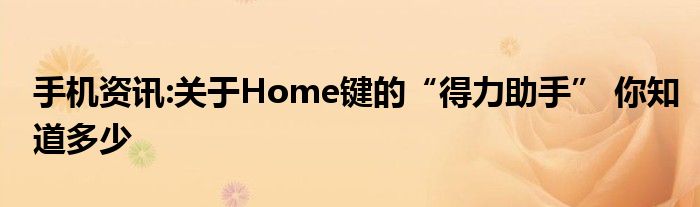 如今使用IT數碼設備的小伙伴們是越來越多了,那么IT數碼設備當中是有很多知識的,這些知識很多小伙伴一般都是不知道的,就好比最近就有很多小伙伴們想要知道關于Home鍵的“得力助手” 你知道多少,那么既然現在大家對于關于Home鍵的“得力助手” 你知道多少都感興趣,小編就來給大家分享下關于關于Home鍵的“得力助手” 你知道多少的一些信息吧。