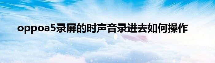 以上就是關于oppoa5錄屏的時聲音錄進去如何操作的一些信息了 童鞋們如果有不同的看法也可以分享出來哦