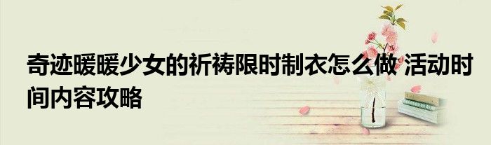 以上就是奇跡暖暖少女的祈禱限時(shí)制衣怎么做的全部?jī)?nèi)容,不知道各位親愛的小伙伴是否掌握了呢?希望能提供些幫助!如果還有其他疑問,歡迎訪問當(dāng)游網(wǎng)的相關(guān)文章。