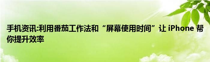 如今使用IT數碼設備的小伙伴們是越來越多了,那么IT數碼設備當中是有很多知識的,這些知識很多小伙伴一般都是不知道的,就好比最近就有很多小伙伴們想要知道利用番茄工作法和“屏幕使用時間”讓 iPhone 幫你提升效率,那么既然現在大家對于利用番茄工作法和“屏幕使用時間”讓 iPhone 幫你提升效率都感興趣,小編就來給大家分享下關于利用番茄工作法和“屏幕使用時間”讓 iPhone 幫你提升效率的一些信息吧。