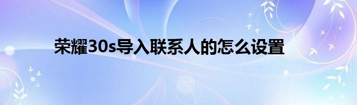 以上就是關于榮耀30s導入聯系人的怎么設置的一些信息了 童鞋們如果有不同的看法也可以分享出來哦