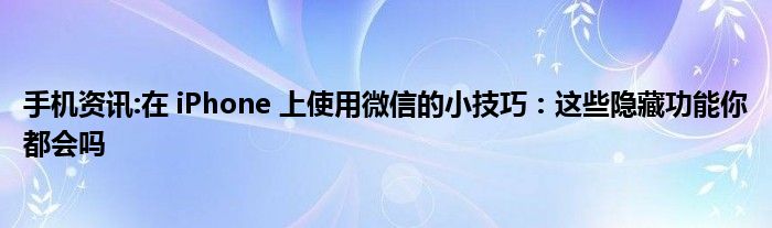 如今使用IT數(shù)碼設(shè)備的小伙伴們是越來越多了,那么IT數(shù)碼設(shè)備當中是有很多知識的,這些知識很多小伙伴一般都是不知道的,就好比最近就有很多小伙伴們想要知道在 iPhone 上使用微信的小技巧:這些隱藏功能你都會嗎,那么既然現(xiàn)在大家對于在 iPhone 上使用微信的小技巧:這些隱藏功能你都會嗎都感興趣,小編就來給大家分享下關(guān)于在 iPhone 上使用微信的小技巧:這些隱藏功能你都會嗎的一些信息吧。