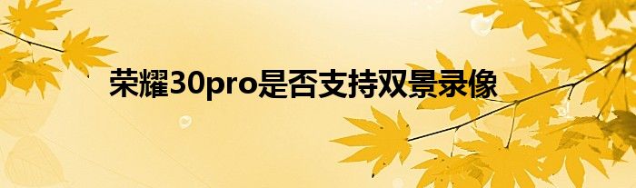 榮耀30pro是否支持雙景錄像