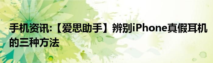 如今使用IT數碼設備的小伙伴們是越來越多了,那么IT數碼設備當中是有很多知識的,這些知識很多小伙伴一般都是不知道的,就好比最近就有很多小伙伴們想要知道【愛思助手】辨別iPhone真假耳機的三種方法,那么既然現在大家對于【愛思助手】辨別iPhone真假耳機的三種方法都感興趣,小編就來給大家分享下關于【愛思助手】辨別iPhone真假耳機的三種方法的一些信息吧。