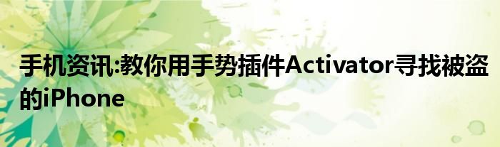 如今使用IT數碼設備的小伙伴們是越來越多了,那么IT數碼設備當中是有很多知識的,這些知識很多小伙伴一般都是不知道的,就好比最近就有很多小伙伴們想要知道教你用手勢插件Activator尋找被盜的iPhone,那么既然現在大家對于教你用手勢插件Activator尋找被盜的iPhone都感興趣,小編就來給大家分享下關于教你用手勢插件Activator尋找被盜的iPhone的一些信息吧。