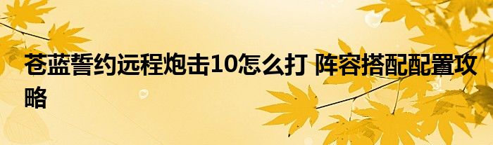 在蒼藍(lán)誓約里,遠(yuǎn)程炮擊10是要求強(qiáng)力輸出的高難度本,那么具體什么樣的陣容搭配比較好通關(guān)呢,下面就為大家?guī)碓敿?xì)的攻略介紹,一起來看看吧!