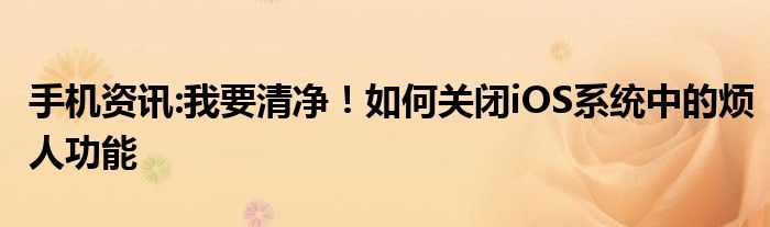 如今使用IT數碼設備的小伙伴們是越來越多了,那么IT數碼設備當中是有很多知識的,這些知識很多小伙伴一般都是不知道的,就好比最近就有很多小伙伴們想要知道我要清凈!如何關閉iOS系統中的煩人功能,那么既然現在大家對于我要清凈!如何關閉iOS系統中的煩人功能都感興趣,小編就來給大家分享下關于我要清凈!如何關閉iOS系統中的煩人功能的一些信息吧。