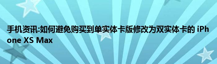 如今使用IT數碼設備的小伙伴們是越來越多了,那么IT數碼設備當中是有很多知識的,這些知識很多小伙伴一般都是不知道的,就好比最近就有很多小伙伴們想要知道如何避免購買到單實體卡版修改為雙實體卡的 iPhone XS Max,那么既然現在大家對于如何避免購買到單實體卡版修改為雙實體卡的 iPhone XS Max都感興趣,小編就來給大家分享下關于如何避免購買到單實體卡版修改為雙實體卡的 iPhone XS Max的一些信息吧。