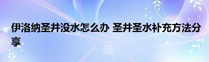 伊洛納游戲之中,圣井是很多玩家關注的一個東西,但是它偶爾會出現(xiàn)沒有圣水的情況,那么這種時候玩家該怎么去補充圣水呢?下面就來分享一下具體的方法吧。