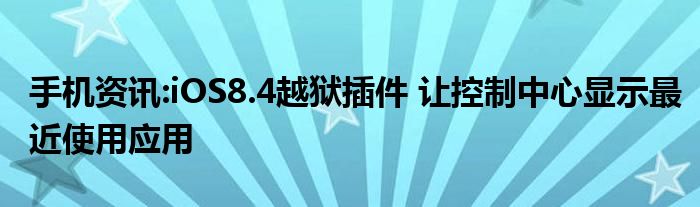 如今使用IT數碼設備的小伙伴們是越來越多了,那么IT數碼設備當中是有很多知識的,這些知識很多小伙伴一般都是不知道的,就好比最近就有很多小伙伴們想要知道iOS8.4越獄插件 讓控制中心顯示最近使用應用,那么既然現在大家對于iOS8.4越獄插件 讓控制中心顯示最近使用應用都感興趣,小編就來給大家分享下關于iOS8.4越獄插件 讓控制中心顯示最近使用應用的一些信息吧。