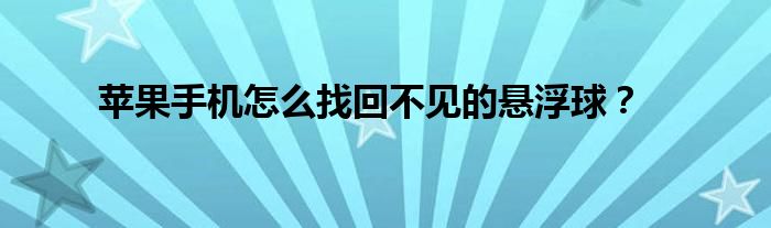 近來發現不少童鞋對蘋果手機怎么找回不見的懸浮球這方面的信息都比較感興趣,今天小編就不辭辛苦為童鞋們整理了一些關于蘋果手機怎么找回不見的懸浮球這方面的信息,希望對需要這方面信息的朋友有所幫助。