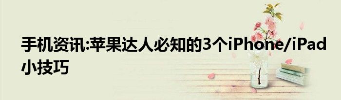 如今使用IT數碼設備的小伙伴們是越來越多了,那么IT數碼設備當中是有很多知識的,這些知識很多小伙伴一般都是不知道的,就好比最近就有很多小伙伴們想要知道蘋果達人必知的3個iPhone/iPad小技巧,那么既然現在大家對于蘋果達人必知的3個iPhone/iPad小技巧都感興趣,小編就來給大家分享下關于蘋果達人必知的3個iPhone/iPad小技巧的一些信息吧。