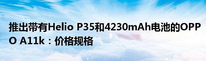 智能手機制造商OPPO已在悄然推出了一款新型預算設備。它被稱為OPPO A11k。最新產品與本月初在該國宣布的OPPO A12十分相似。OPPO A11k保留相同的設計和規格,包括HD +顯示屏,Helio P35和A12的雙后置攝像頭。兩種智能手機在RAM和存儲容量方面有所不同。