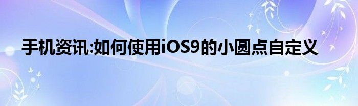 如今使用IT數碼設備的小伙伴們是越來越多了,那么IT數碼設備當中是有很多知識的,這些知識很多小伙伴一般都是不知道的,就好比最近就有很多小伙伴們想要知道如何使用iOS9的小圓點自定義,那么既然現在大家對于如何使用iOS9的小圓點自定義都感興趣,小編就來給大家分享下關于如何使用iOS9的小圓點自定義的一些信息吧。