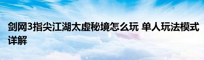 在劍網(wǎng)3指尖江湖里,即將上線全新的單人玩法太虛秘境,具體的玩法是怎么樣的呢?下面就為大家提供詳細的攻略介紹,感興趣的玩家不要錯過哦!