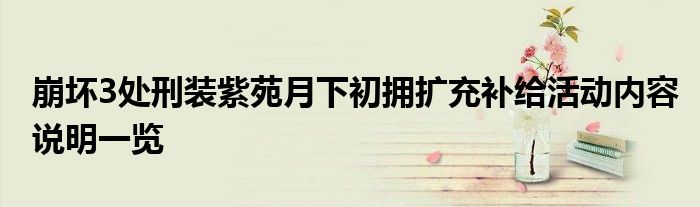 在崩壞三里,伴隨著處刑裝紫苑的上線,相對應的擴充補給活動也應運而生。下面就為大家提供詳細的攻略介紹,感興趣的玩家不要錯過哦!