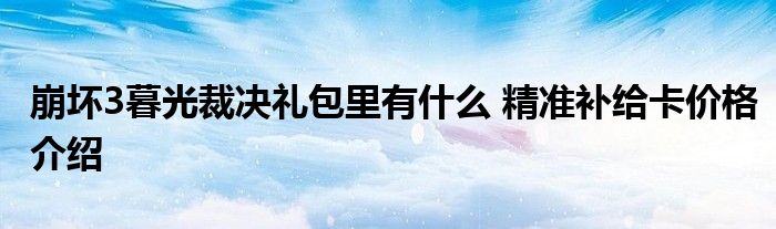 在崩壞三里,暮光裁決精準(zhǔn)補(bǔ)給卡禮包是今日上線的限購(gòu)禮包,那么具體的價(jià)格和解鎖需要的等級(jí)分別是什么呢?下面就為大家提供詳細(xì)的攻略介紹,感興趣的玩家不要錯(cuò)過哦!