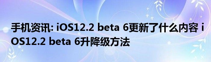 如今使用IT數碼設備的小伙伴們是越來越多了,那么IT數碼設備當中是有很多知識的,這些知識很多小伙伴一般都是不知道的,就好比最近就有很多小伙伴們想要知道 iOS12.2 beta 6更新了什么內容 iOS12.2 beta 6升降級方法,那么既然現在大家對于 iOS12.2 beta 6更新了什么內容 iOS12.2 beta 6升降級方法都感興趣,小編就來給大家分享下關于 iOS12.2 beta 6更新了什么內容 iOS12.2 beta 6升降級方法的一些信息吧。