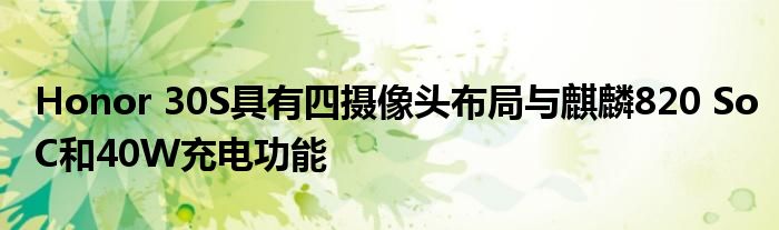 “ Honor 30S有望成為Honor 30系列中的中檔手機,其規(guī)格如麒麟820 5G SoC,四攝像頭和40W快速充電”